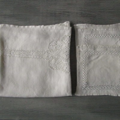 Nappe a thé ancienne brodée+6serviettes assorties
