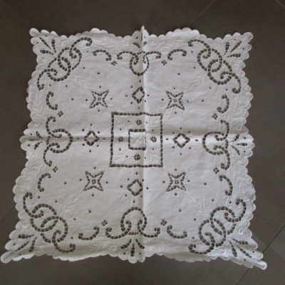 Ancien centre de table/napperon brodé 85cm x 85cm
