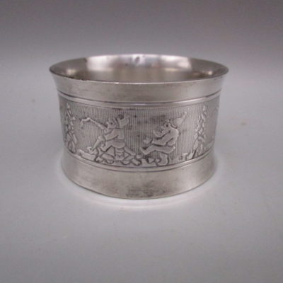Rond de serviette ancien en métal argenté – décor de lutins