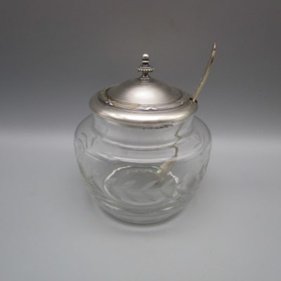 Confiturier ancien en métal argenté et cristal