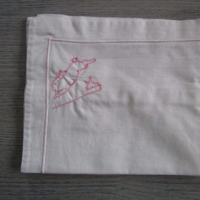 Taie d’oreiller d’enfant ancienne brodée en coton :55x41cm
