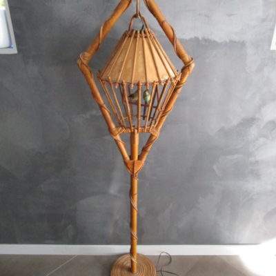 Lampadaire aux oiseaux-LOUIS SOGNOT- en bambou/rotin années 50/60