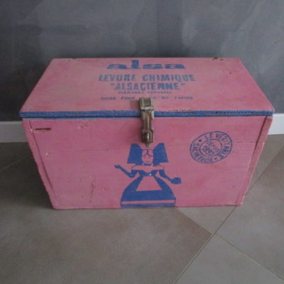 Grande boite publicitaire ancienne en bois » levure chimique ALSA «