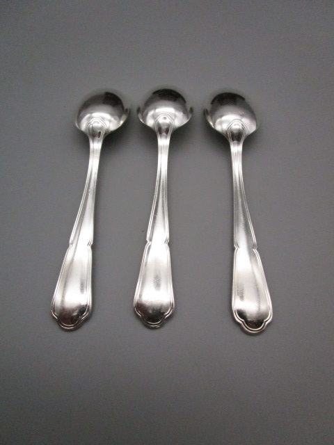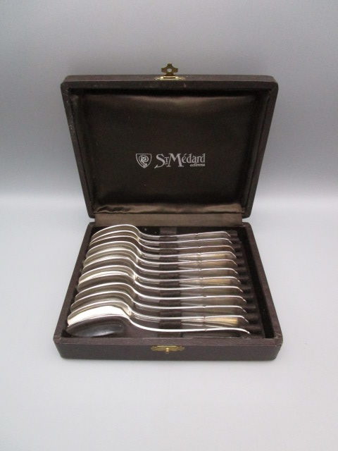 12 petites cuillères anciennes en métal argenté, orfèvrerie Frionnet François, en très bon état,longueur:14cm, l’écrin n’est pas d’origine