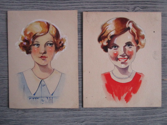 2 Aquarelles anciennes années 30’/50′ sur carton – portraits de jeunes filles, en bon état