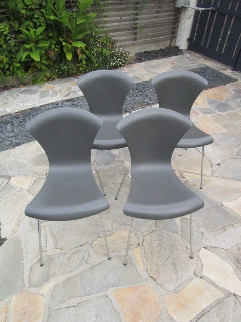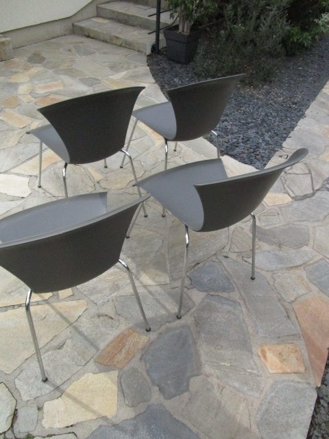 4 chaises nihau grises par Magistretti pour Kartell – années 2000 , en bon état, traces d’usage