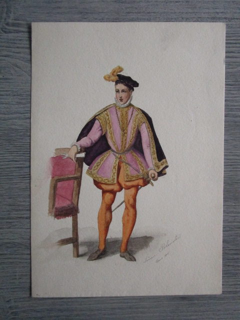 Aquarelle ancienne 19eme – gentilhomme renaissance – Léonie BLANCHARD (1849-1936) en bon état