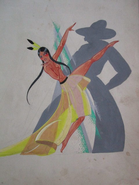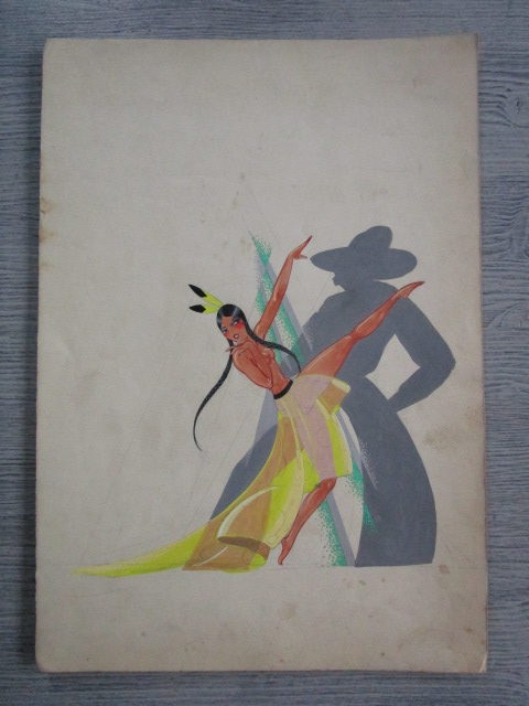 Aquarelle originale ancienne art déco – danseuse indienne, en bon état, présence de taches