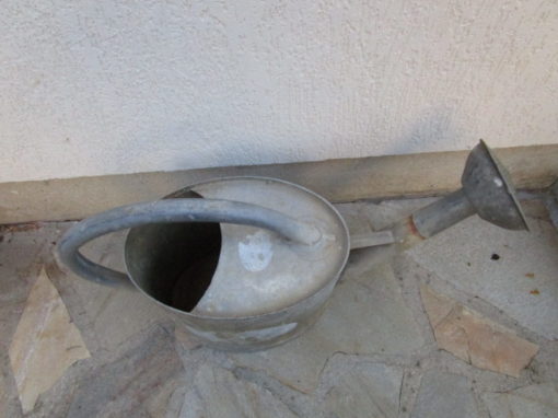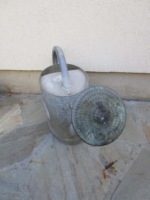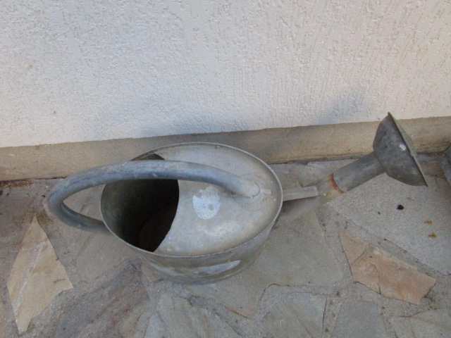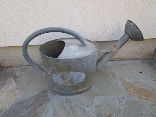 Arrosoir ancien en zinc, en bon état, non percé, longueur avec pomme:65cm, largeur:21.5cm, hauteur poignée:40cm