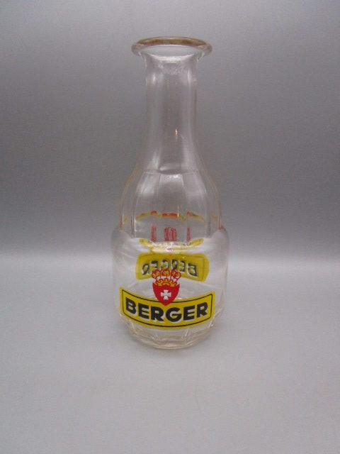 Carafe publicitaire ancienne BERGER en très bon état,hauteur:20.5cm, diamètre: 9cm