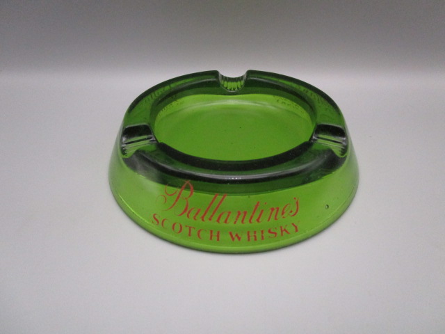 Cendrier ancien publicitaire « whisky BALLANTINES » en verre