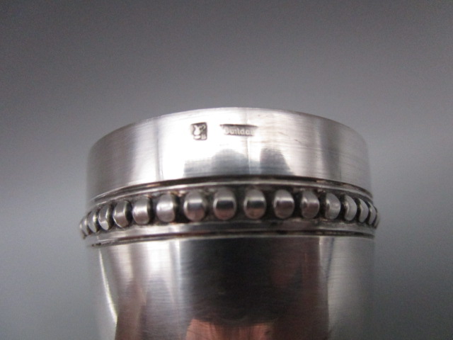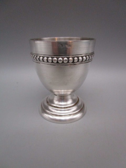 Coquetier ancien en métal argenté poinçonné, en bon état, diamètre: 4.3cm,hauteur: 5.4cm