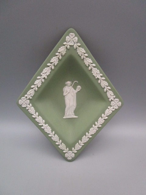 Coupelle Wedgwood verte en forme de losange, en très bon état