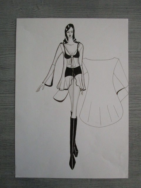 Dessin/aquarelle de mode original ancien sur papier – en très bon état