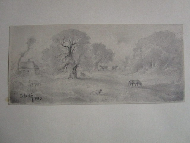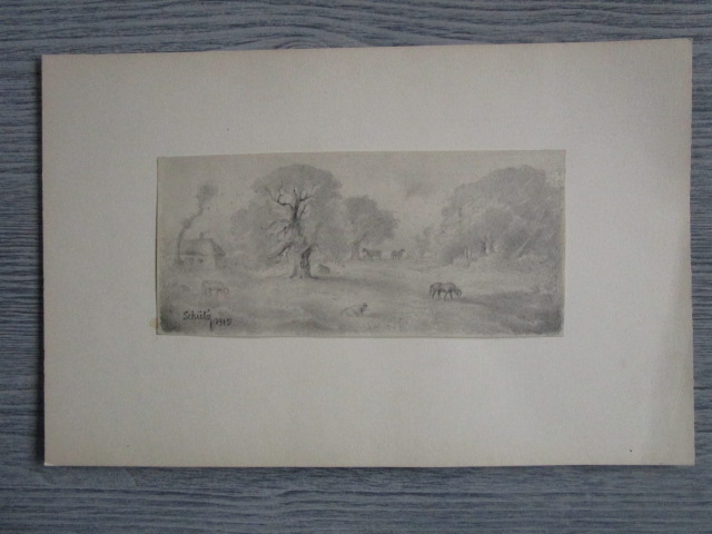 Dessin pastoral a la mine – signé SCHUTZ 1915