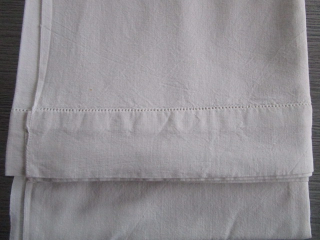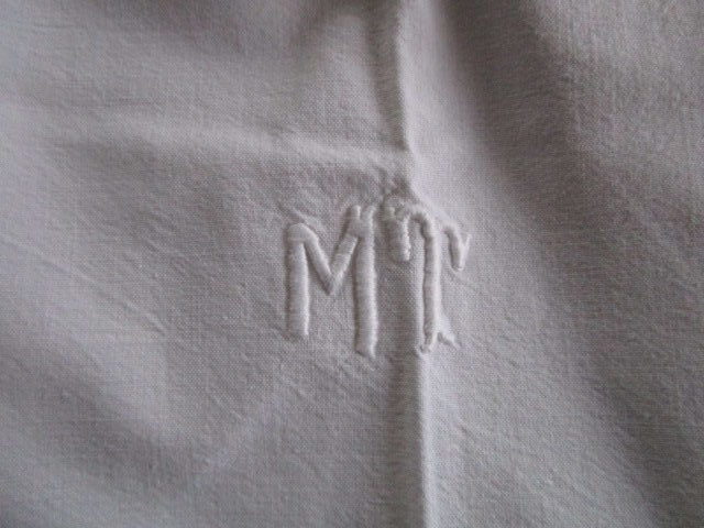 Drap ancien en coton:300x210cm, monogrammé M.T et broderie de jours, en très bon état, linge lavé, vérifié et repassé, il peut toujours néanmoins subsisté quelques taches qui auraient échappées a notre nettoyage