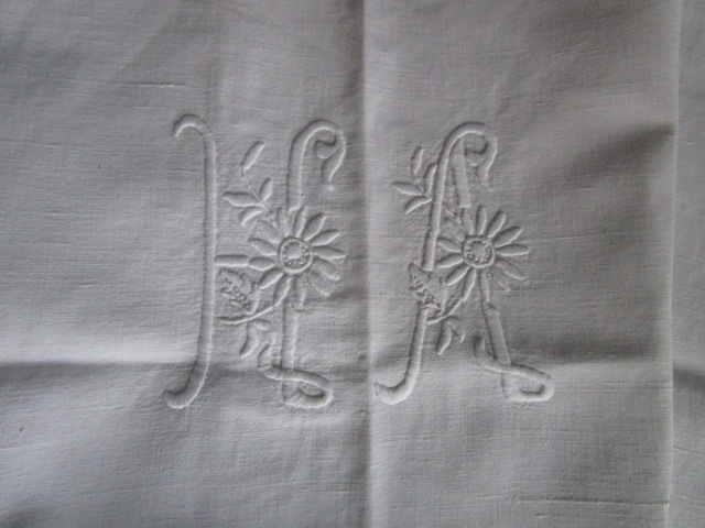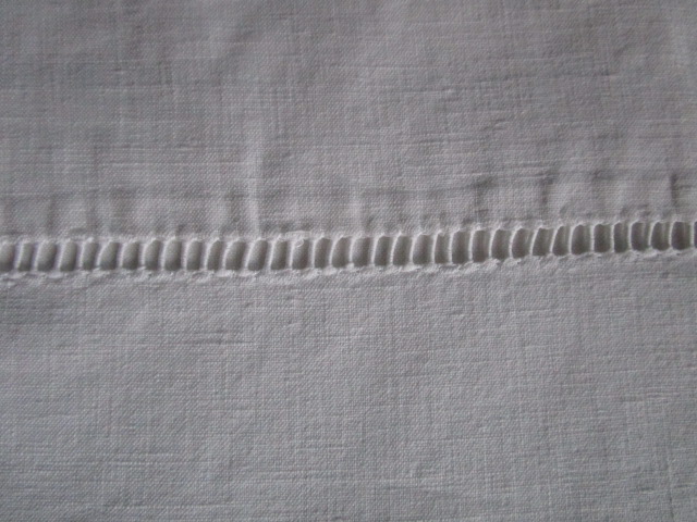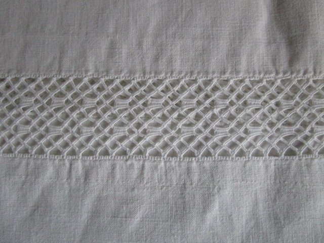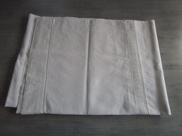 Drap ancien en coton:300x220cm retour brodé+broderie de jours et monogramme HA, en très bon état, linge lavé, vérifié et repassé