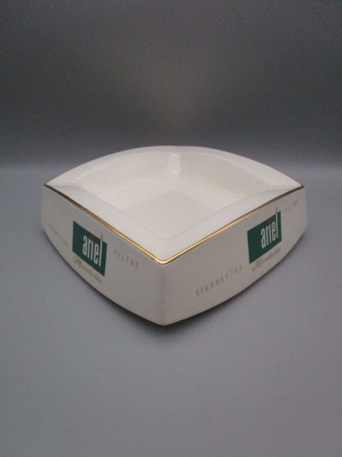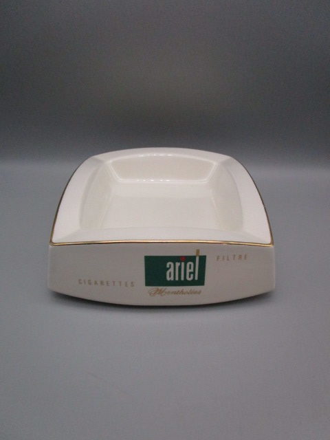 Grand cendrier de comptoir publicitaire ancien « cigarettes ARIEL » en faïence de Longchamp, en très bon état, dimensions:19x19cm, hauteur:6cm