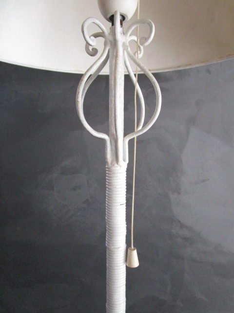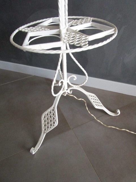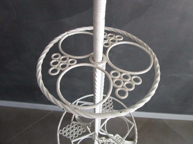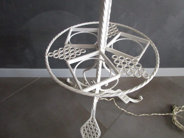 Lampadaire porte-plantes ancien en fer forgé blanc