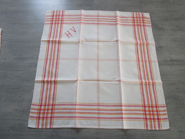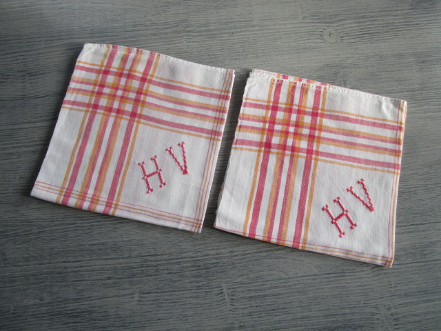Lot de 2 torchons anciens monogrammés en coton,dimensions:60x57cm,petit monogramme HV, en bon état, lavé repassé et vérifié