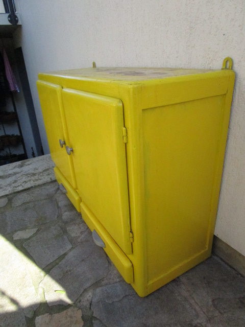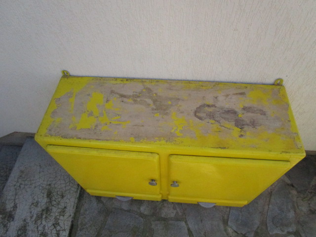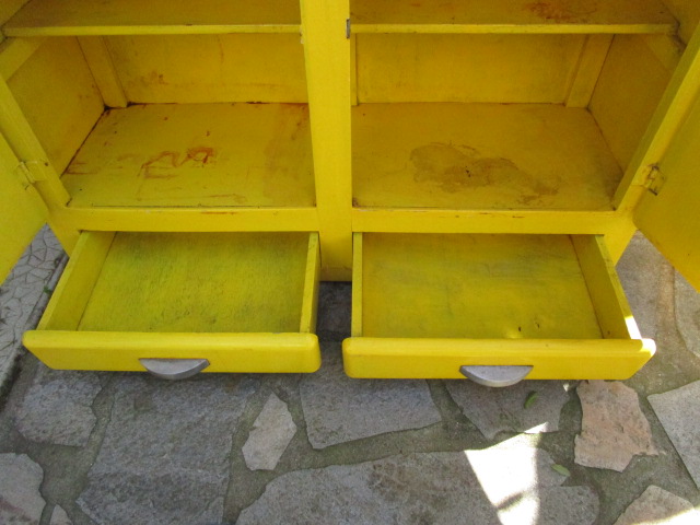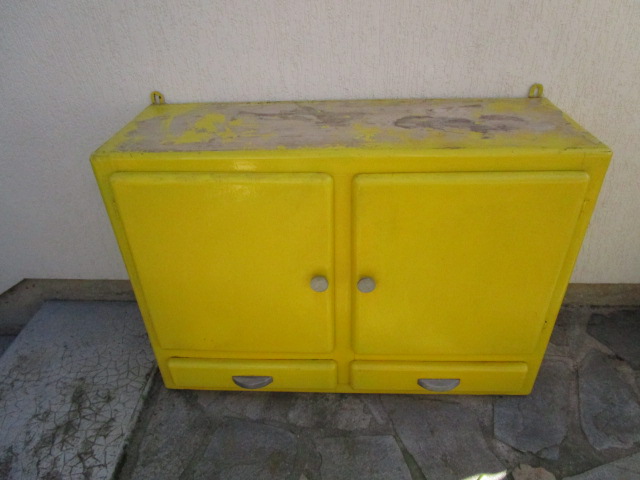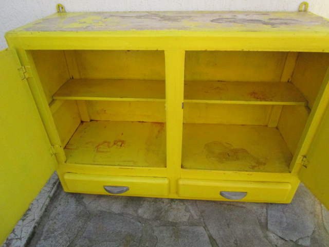 meuble de rangement mural MADO en bois et poignées aluminium, en bon état, sortie de garage, dans son jus, a finir de nettoyer ou a repeindre