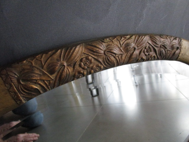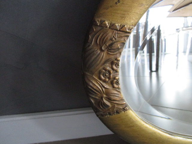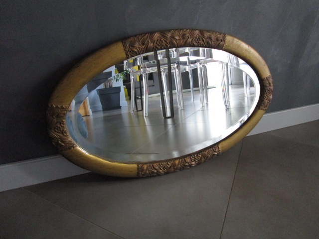 Miroir ancien art déco, cadre doré, miroir biseauté, en très bon état, sans manque