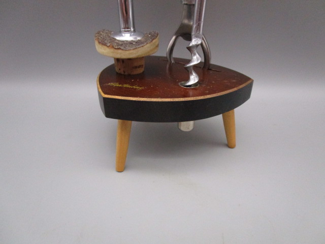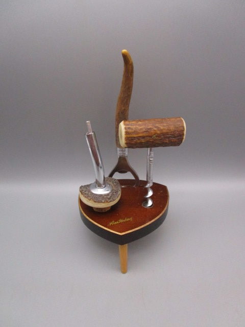 Nécessaire de table pour vin et bouteille a capsule vintage, manches en corne – années 60′ – souvenir de Beatenberg (Suisse) en bon état, dimensions: 10×9.5cm, hauteur: 20cm