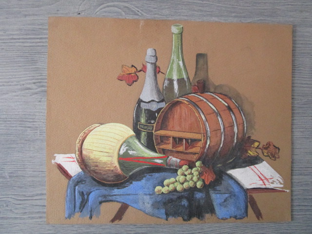 Peinture ancienne sur papier – nature morte, en bon état