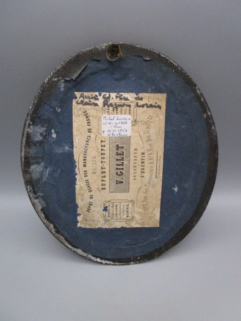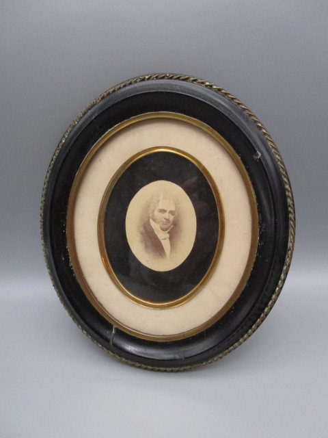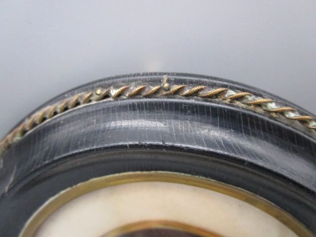 Petit cadre ovale 19eme en bois noirci et ornement en laiton torsadé, avec un portrait ,bon état