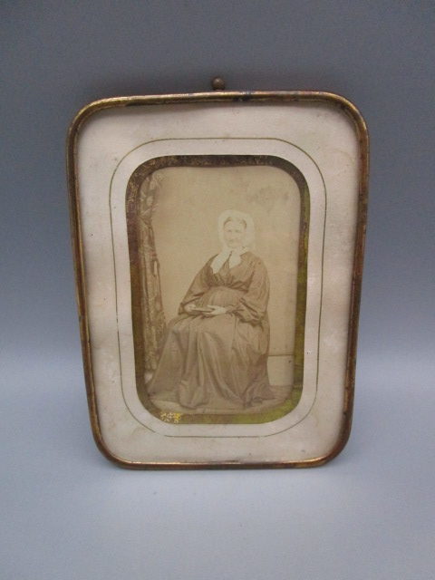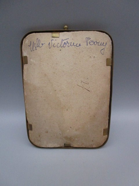 Petit cadre photo ancien en laiton a suspendre, début 20ème, avec photo d’époque
