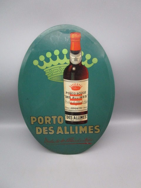 Plaque publicitaire serigraphiée ancienne » porto des Allimes «