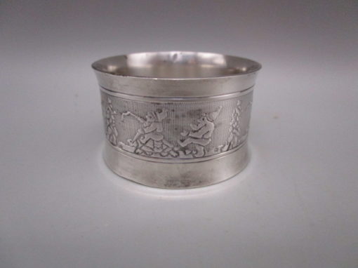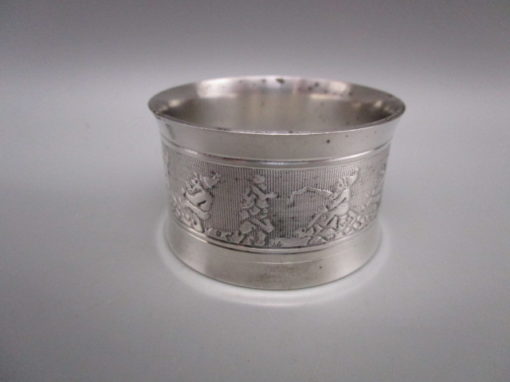 Rond de serviette ancien en métal argenté – décor de lutins