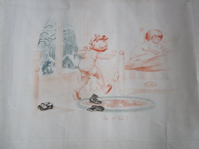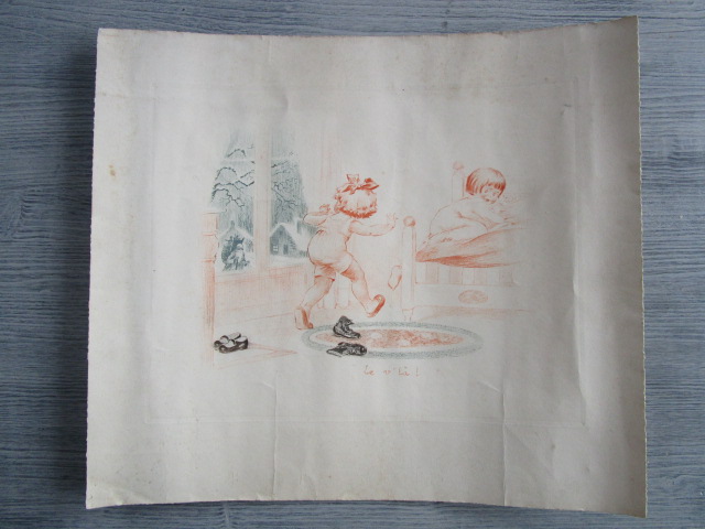 Sanguine originale ancienne – humour enfantin dans le gout de Germaine Bouret, en bon état, plis sur les rebords