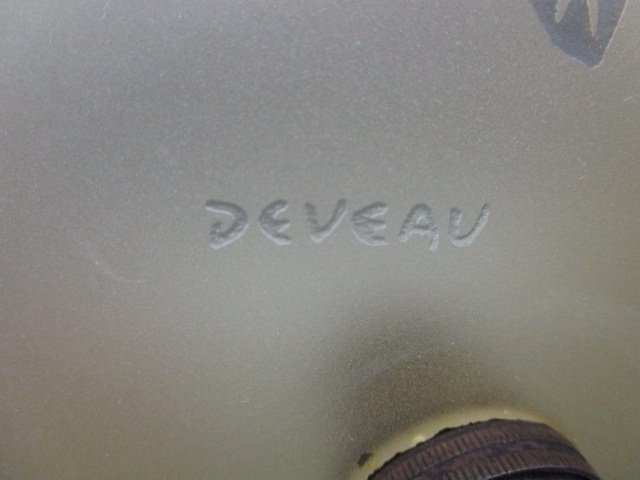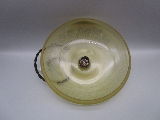 Suspension ancienne art déco signée DEVEAU couleur caramel, en bon état(présence de micro egrenure sur le rebord), électricité refaite, douille baïonnette d’époque, fournie sans ampoule, fil tissu torsadé de 50cm.