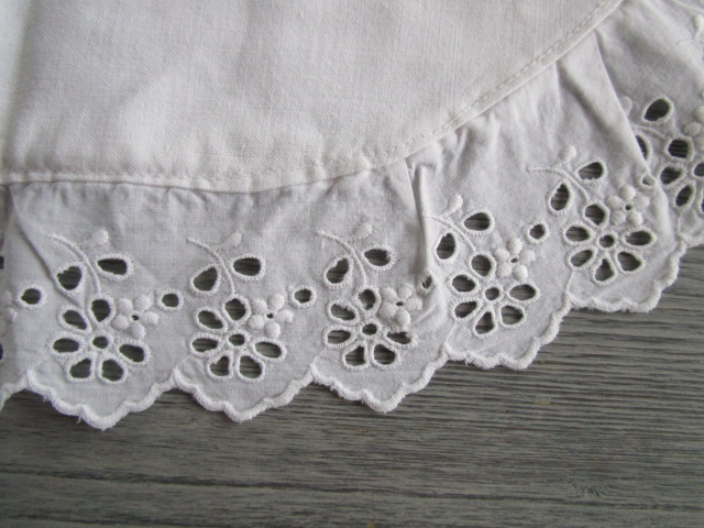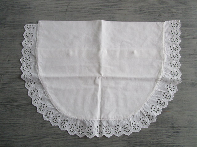 Taie d’oreiller demi-lune de berceau ancienne brodée, en très bon état, linge vérifié sortie d’armoire ancienne, largeur:47cm, hauteur:33cm
