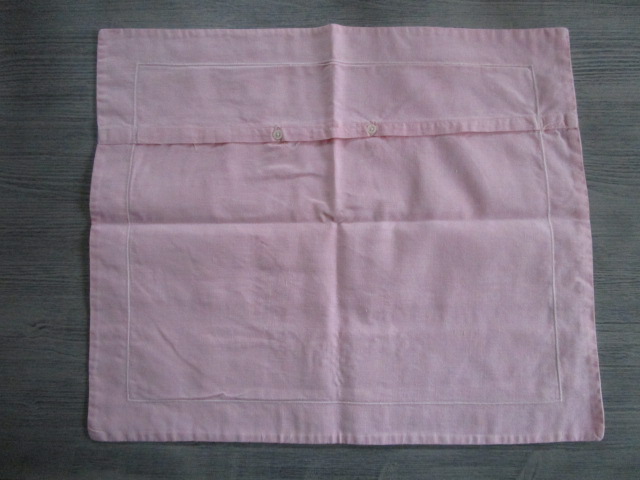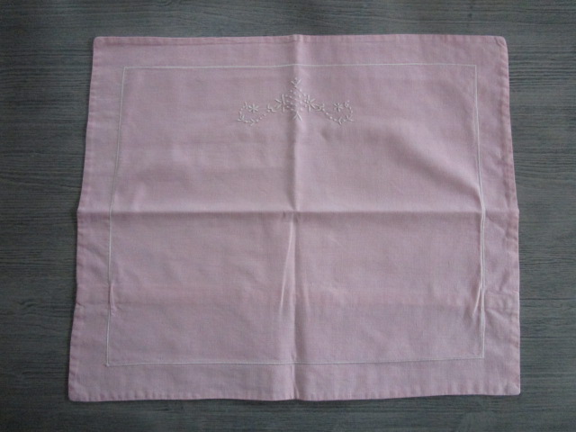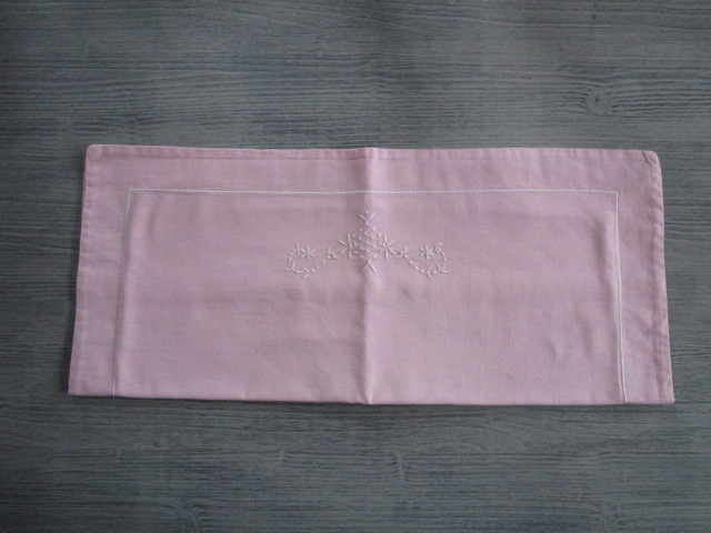 Taie d’oreiller d’enfant ancienne brodée, couleur rose, en très bon état, linge vérifié sortie d’armoire ancienne